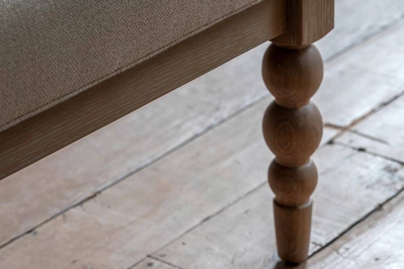 The Artisan Coffee Table's top is luxuriously padded and upholstered in a natural biscuit-colored polyester fabric. This design offers a comfortable surface for resting your feet or placing items, elevating the table from a mere functional piece to a luxurious and comfortable addition to your space.