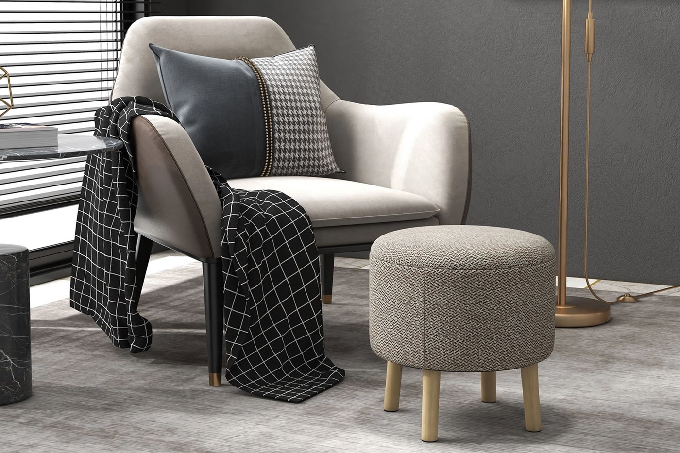 The footrest features thick sponge padding which is upholstered in premium linen-look polyester fabric, available in grey, brown or blue. These versatile colour options allow you to choose the perfect match for your decor, while its elegant design adds a touch of sophistication to your space.