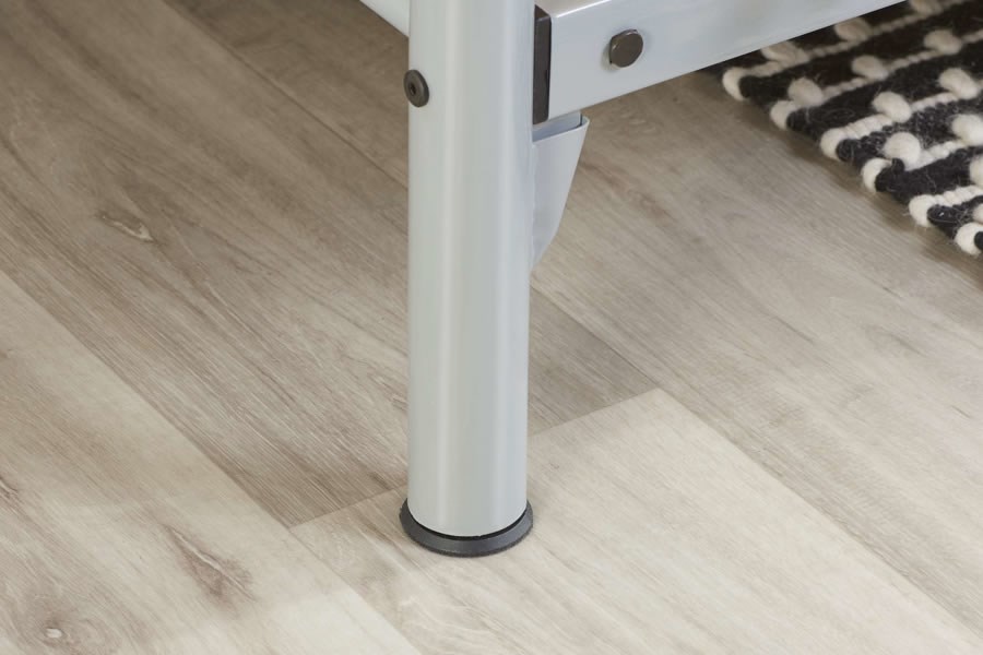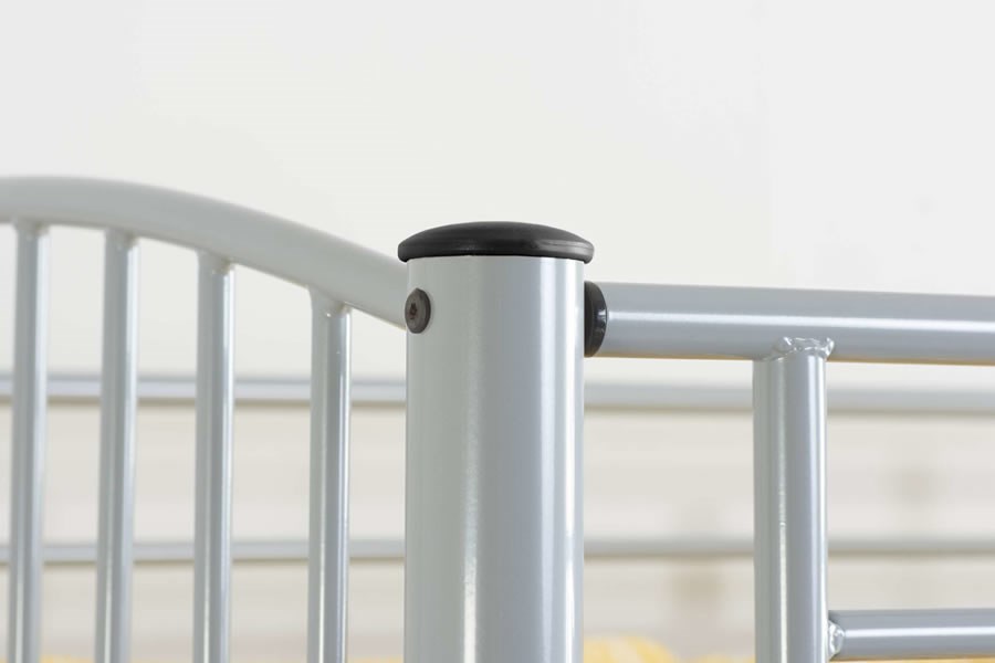 With an epoxy powder coated paint finish and beech coloured rubberwood post caps, this frame is available in silver.