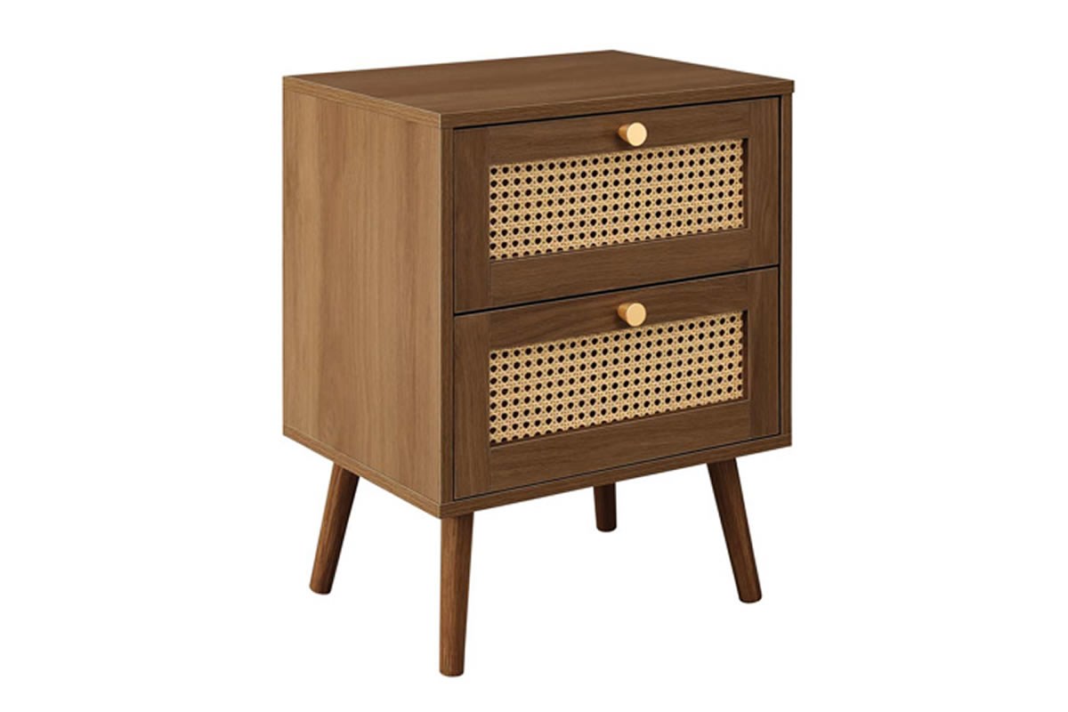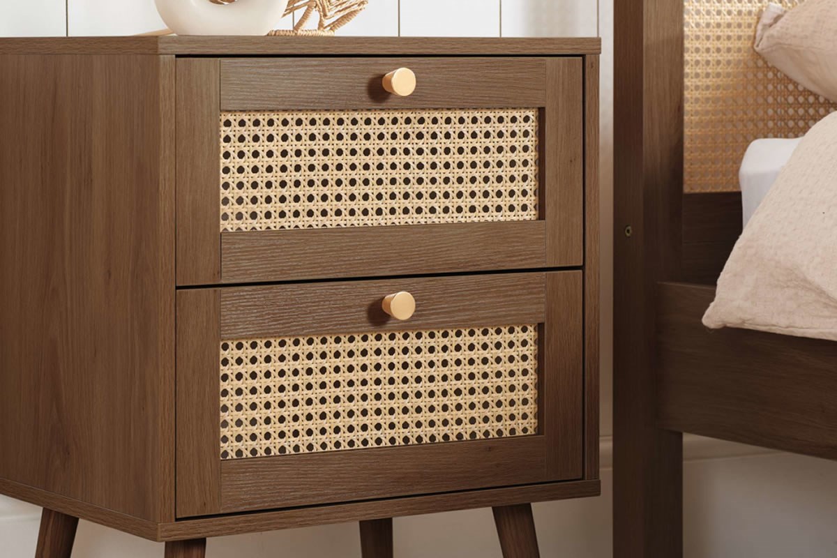 Croxley 2 Drawer Bedside Chest Modern Rattan Design
