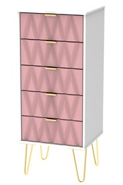 The Diamond Bedroom Range boasts a luxurious scratch-resistant vinyl wrapped matt finish adorned with intricate diamond detailing. To complement its elegance, this range features a gold metal Pin style leg that adds a touch of sophistication.