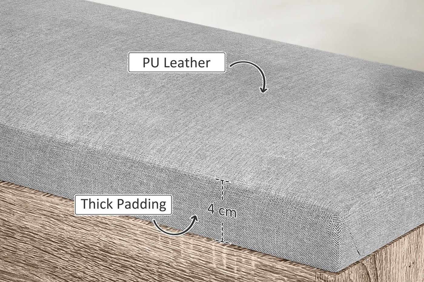 Made from strong engineered wood, the seat is covered in durable grey PU material. This ensures it’s stylish and easy to clean. The high-quality materials guarantee long-lasting use, enhancing both the look and function of your home.