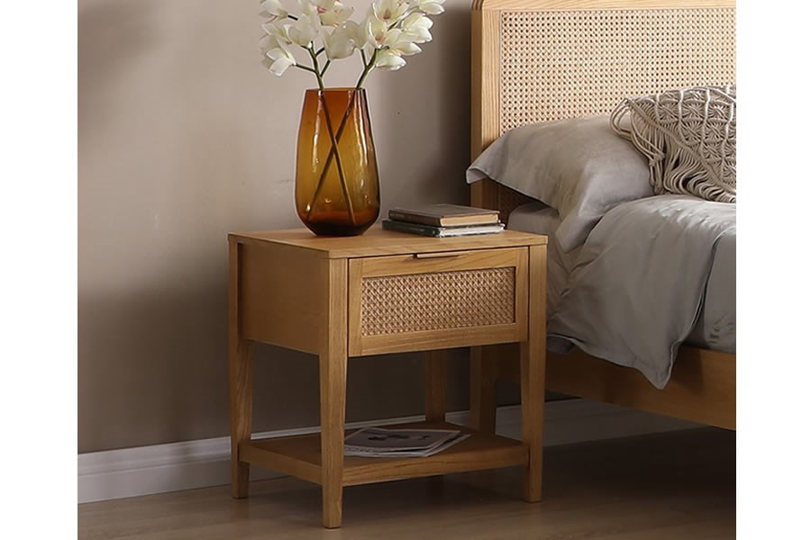Ezra 1 Drawer Rattan Bedside Table Modern Design