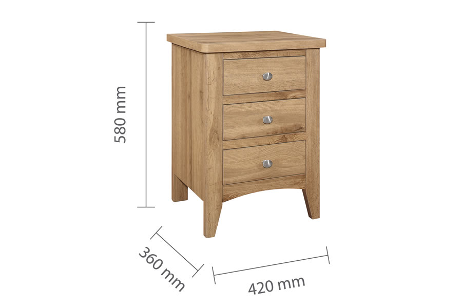 The 3 drawer bedside is ideal for storing your belongings and keeping your bedroom neat. You can sort your items in the three spacious drawers and enjoy the convenience of having them close by.