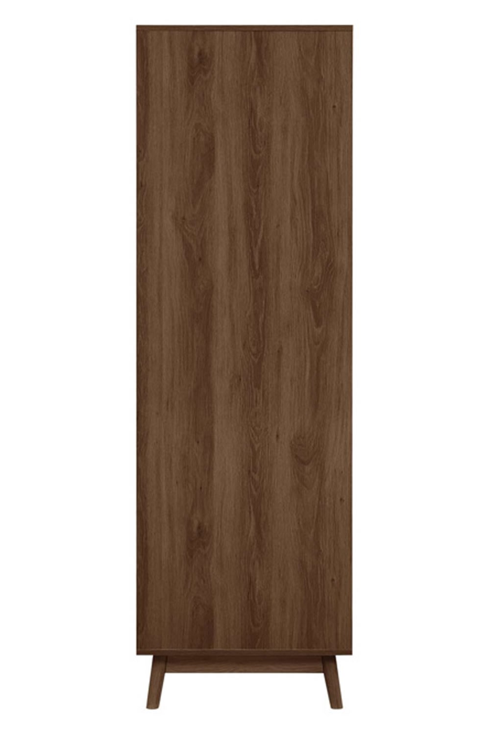 Stylish round handles enhance the wardrobe's modern yet subtle design, providing a comfortable grip. Standing on solid, slanted feet, it boasts a sleek, contemporary silhouette. These angled feet provide stability while elevating the piece, ensuring it complements both classic and modern interiors.