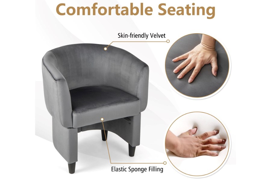 Modern Design. Curved Backrest and Armrests. Elastic Sponge Filling. Anti Slip Foot Pads. Weight Tested to 150kg