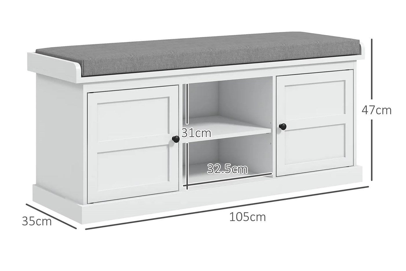 Featuring two double cupboards and two middle shelves, this unit maximises storage. Each shelf holds one pair of shoes with a 5kg capacity, keeping footwear secure. Elegant black knob handles add a touch of sophistication, making the cupboards easy to open and close.