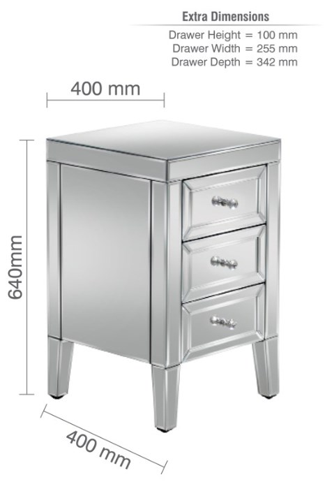 Valencia Mirrored 3 Drawer Bedside
