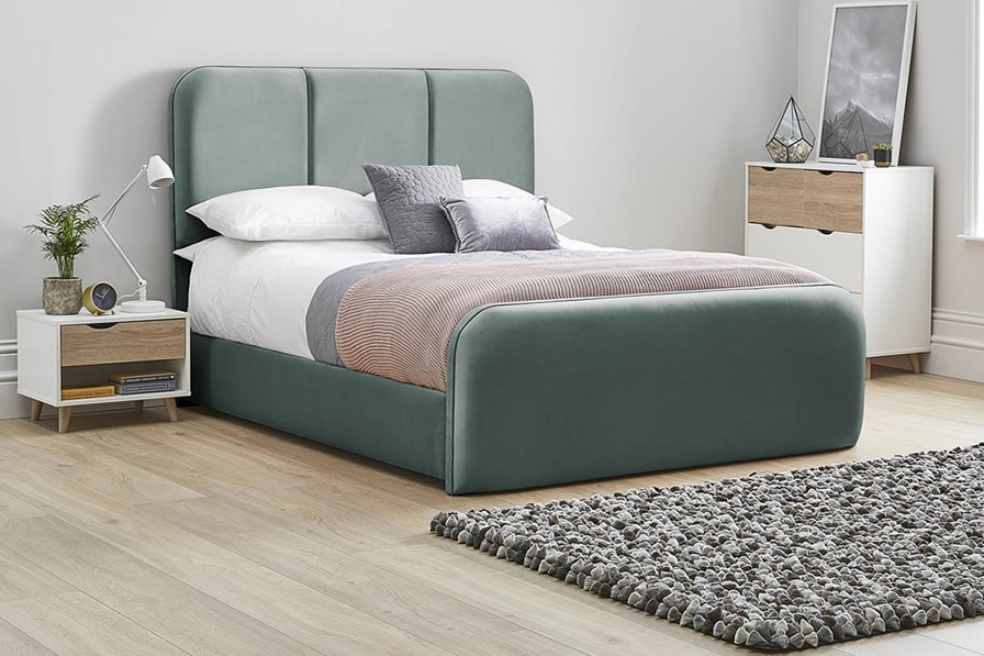 The Zinnia plush fabric bed frame with a high foot end bed frame is elegant and modern in its simplicity in looks and will suit a modern room.